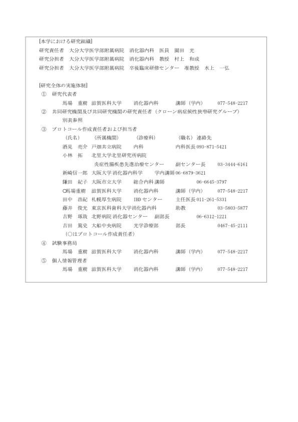 研究機関・実施責任者: 大分大学医学部附属病院 消化器内科 園田 光